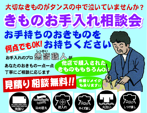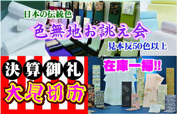 色無地お誂え会&お手入れ相談会は今週土曜日(21日土曜)から 振袖・留袖・訪問着・色無地・小紋・名古屋帯・袋帯、和装・着付け小物なら種類豊富・お値打ち価格。津市、鈴鹿市、四日市市、亀山市