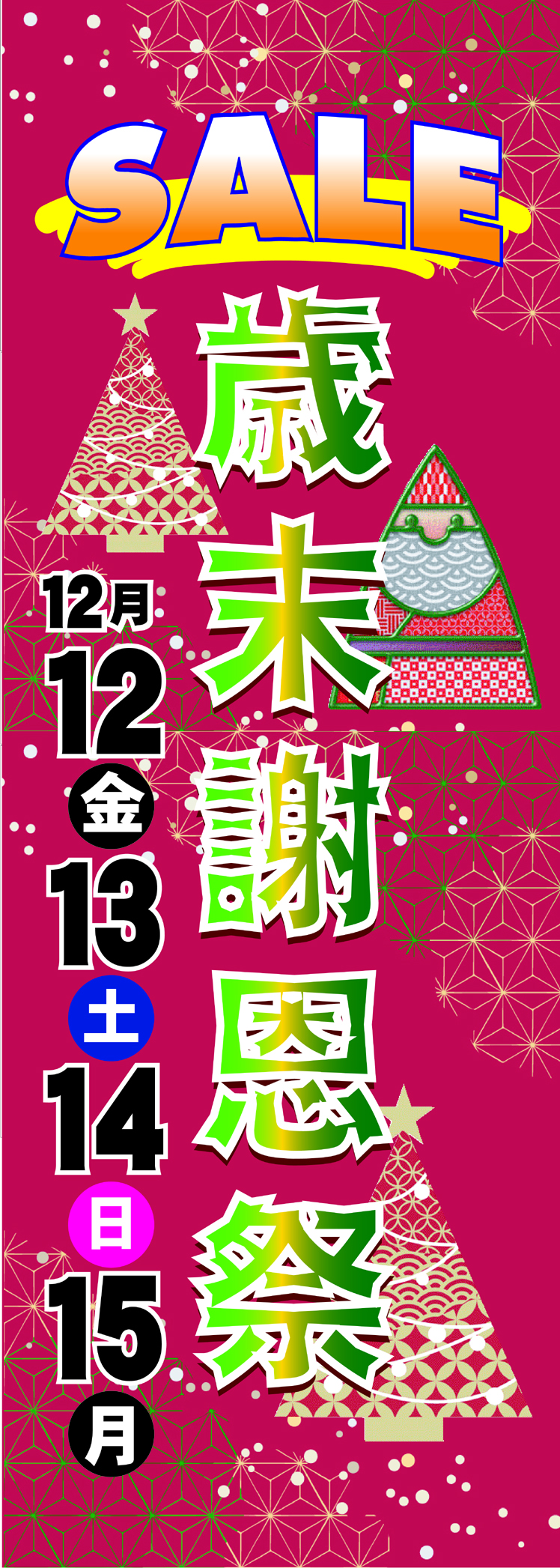 年末恒例の「歳末謝恩祭」では一年の感謝の気持ちを込めて!きもの専門店ならではの確かな品ぞろえで!留袖、色留袖、訪問着、色無地、小紋、コートや羽織、袋帯、名古屋帯、長襦袢などをこの時限りの超特価にてご奉仕いたします。