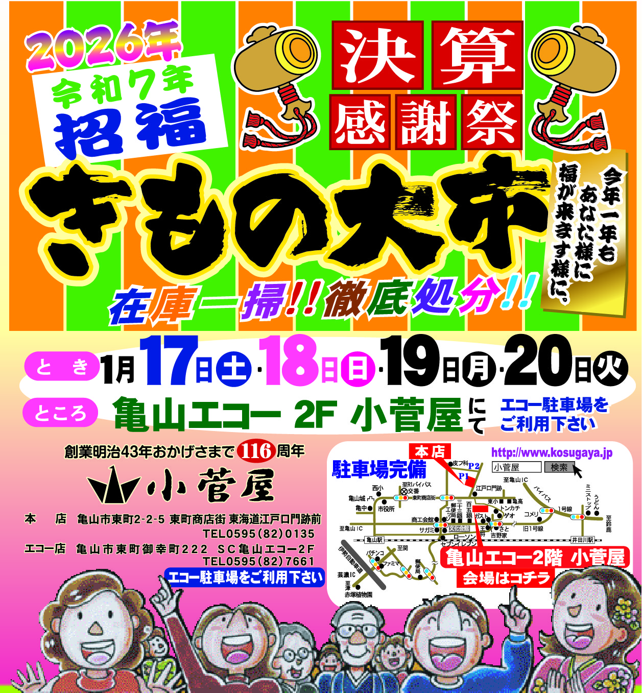 また年明けは1月17日(土)から「決算感謝祭 きもの大市」を開催いたします。